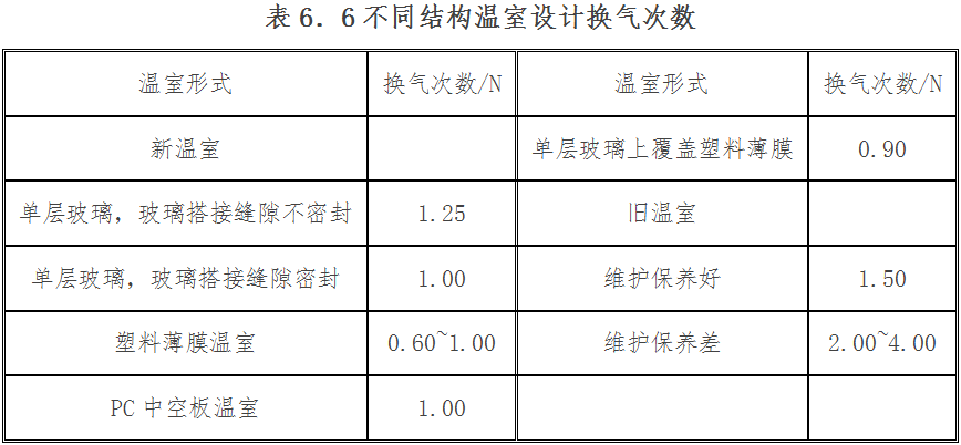N——溫室與外界的空氣交換率,亦稱換氣次數(shù),以每小時(shí)的完全換氣次數(shù)為單位;