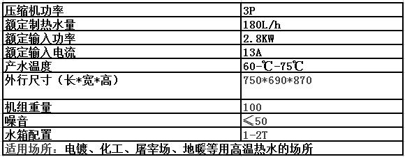 1、 以上數(shù)據(jù)是在干球24℃,溫球溫度19℃,進(jìn)水溫度27℃,出水溫度75℃的環(huán)境條件下測(cè)的;