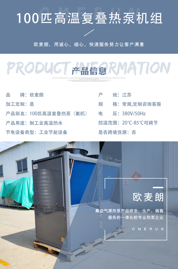 簡介:100匹高溫復疊熱泵,可制85℃高溫熱水,可用于電鍍廠、印染廠、化工、醫(yī)藥、金屬前處理、屠宰場等企業(yè)高溫用水需求!