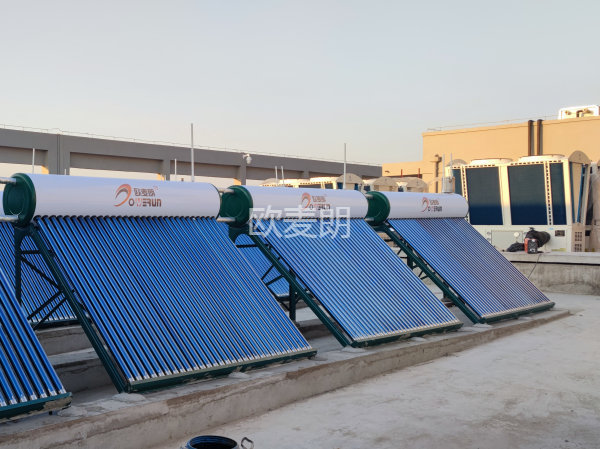 項(xiàng)目配置:30臺(tái)歐麥朗承壓太陽(yáng)能+承壓水箱+電加熱輔助