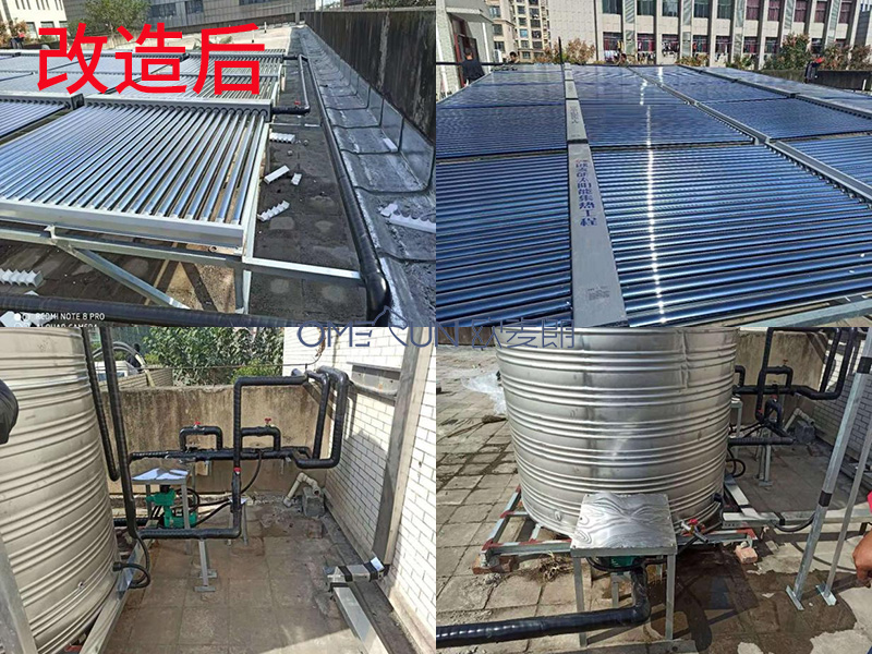 目前整套系統(tǒng)運行下來,效果非常顯著,故障率明顯比之前低很多,哪怕是天氣再冷,也沒出現(xiàn)太陽能管被凍壞,用空氣源熱泵代替電加熱,全年下來,電費也節(jié)省了將近一半,符合節(jié)能環(huán)保綠色時尚的理念,推動了太陽能和空氣能在安徽地區(qū)的使用。