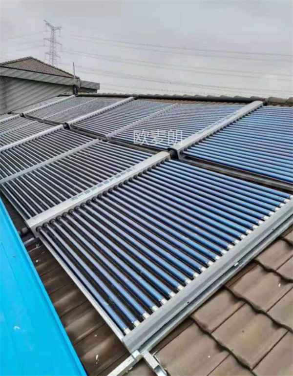 該公司有一棟宿舍樓,要滿足五十個(gè)員工洗澡熱水。以前裝了8臺(tái)30管太陽(yáng)能單機(jī),已經(jīng)裝了十五年,管路已經(jīng)老化、凍壞??蛻舴从骋郧暗奶?yáng)能單機(jī)冬天不好用,容易凍壞,了解到歐麥朗公司是一家專門從事太陽(yáng)能、空氣能熱水的企業(yè),并咨詢了工程用太陽(yáng)能熱水系統(tǒng)。通過(guò)溝通后決定采用φ58x1800X50管的工程模塊,具有自動(dòng)定時(shí)定溫上水、定時(shí)輔助加熱、管道防凍循環(huán)功能,節(jié)能又環(huán)保。