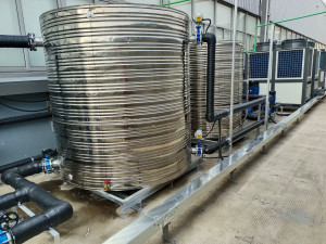 舉個例子:一個長流水養(yǎng)殖項目,要求恒定水溫20度,水流量為60m3/h,新水的水溫15℃。