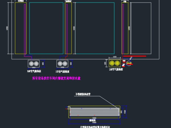 廠家配置:2臺15P,1臺10P空氣能熱泵,池內(nèi)采用DN20的不銹鋼盤管(池內(nèi)堿性)