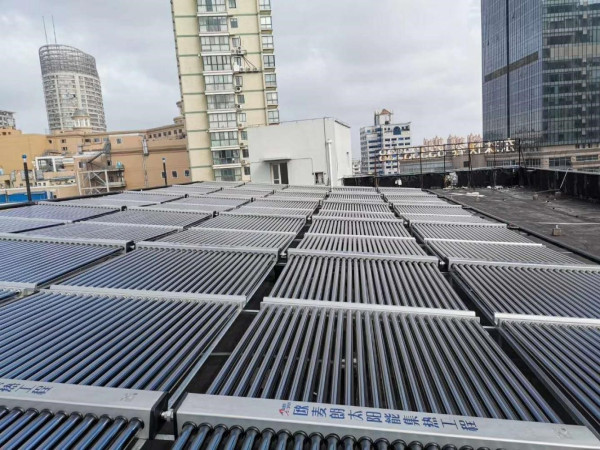 2、集熱器為OML-58/1800-50鈦金玻璃真空管;集熱管數(shù)量為5600支;集熱器數(shù)量共112組;規(guī)格每組為?58×1800mm×50管;