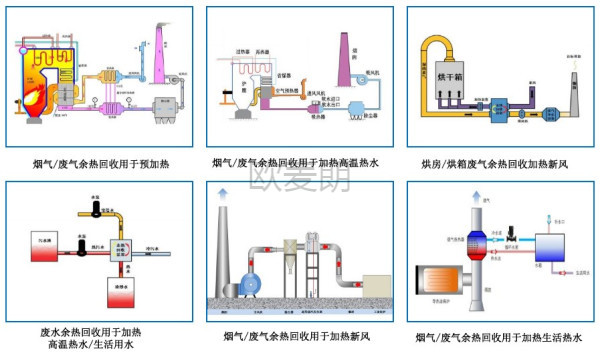 可以采用歐麥朗高效煙氣余熱回收裝置,對鍋爐等設(shè)備的高溫?zé)煔鈴U氣進(jìn)行余熱回收,將回收的熱能用于鍋爐本身的預(yù)熱,可以有效提高鍋爐的熱效率,節(jié)省燃料和能源!