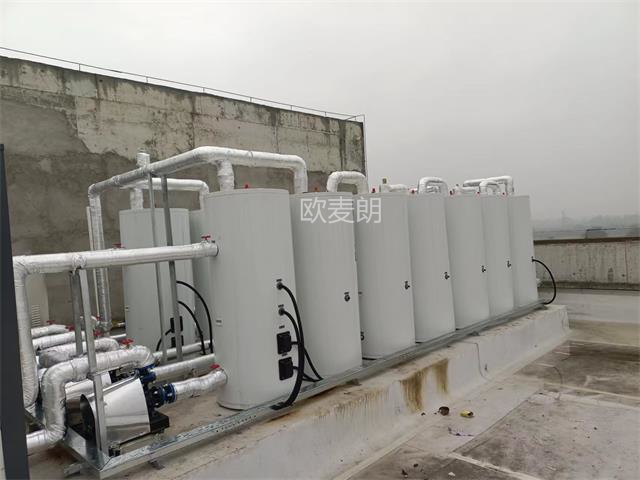 江蘇歐麥朗公司承接了豐樹成都中央廚房基地項(xiàng)目綜合樓熱水工程,采用空氣能CAHP-PI-42承壓熱水系統(tǒng),配置2臺(tái)制熱量42KW的空氣能熱泵+2臺(tái)455升18KW電加熱水箱+12只455升水箱,可滿足264人全天候24小時(shí)55℃生活熱水。