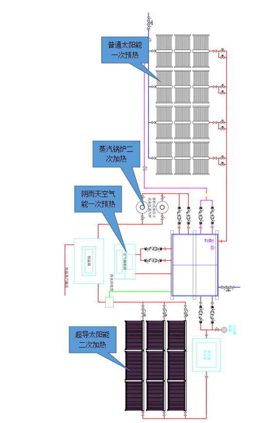 太陽(yáng)能、空氣能、蒸汽鍋爐運(yùn)行原理圖