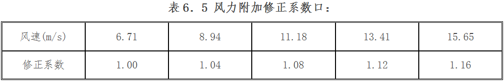 α2——風(fēng)力附加系數(shù),按表6.5選??;
