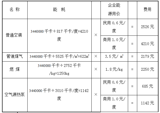 2、多種冷暖解決方案運行費用對比
