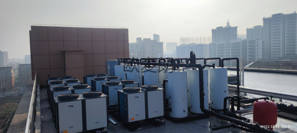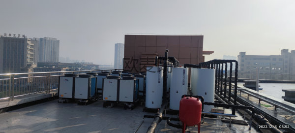 項(xiàng)目配置:8臺直熱式空氣能+4個電加熱水箱+16個保溫水箱