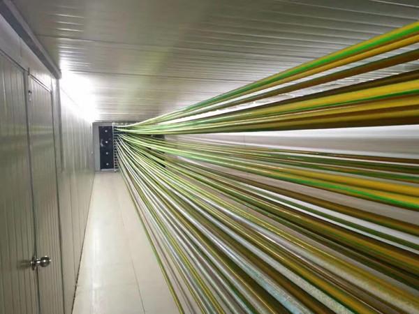 經(jīng)過將近月余的烘干機(jī)房搭建,歐麥朗為安徽客戶搭建的腸衣烘干系統(tǒng)終于調(diào)試成功。歐麥朗負(fù)責(zé)烘干技術(shù)和指導(dǎo)的工程部同事,通過專用的循環(huán)風(fēng)量、含水率、脫水量等測算,為客戶設(shè)計(jì)出一套帶除濕功能的隧道式熱泵烘干機(jī)組,該機(jī)房單次可烘干約1噸腸衣,半封閉式的烘干環(huán)境,也保護(hù)了腸衣在烘干過程中不受到污染,既實(shí)現(xiàn)了清潔烘干,又實(shí)現(xiàn)了客戶減排的目標(biāo)。