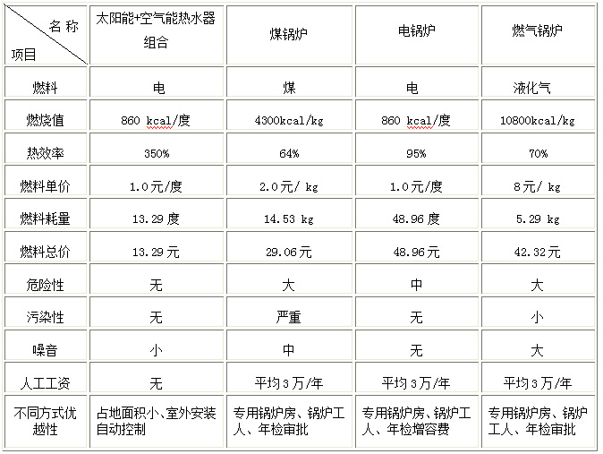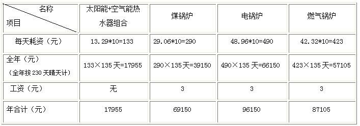 從上述列表可以得到本項目日產(chǎn)10T熱水的年經(jīng)濟性能比較