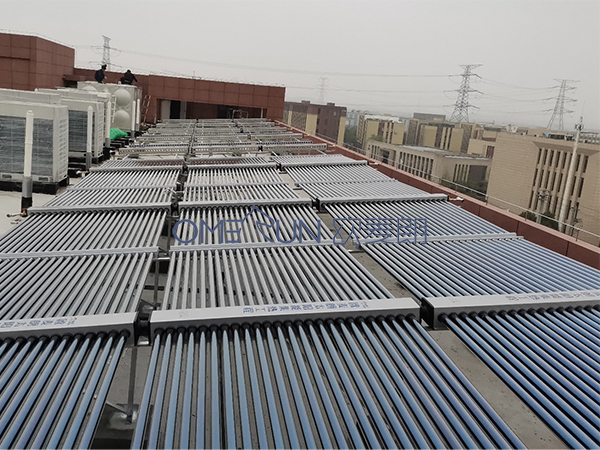 此次歐麥朗給該工程配置了27組50管對插式玻璃真空管太陽能,保證在晴好天氣下提供15噸左右的熱水供應(yīng),兩臺10P空氣能主機保證在陰雨天或者惡劣環(huán)境時,滿足熱水需求。系統(tǒng)投入運行后,得到一致認可!
