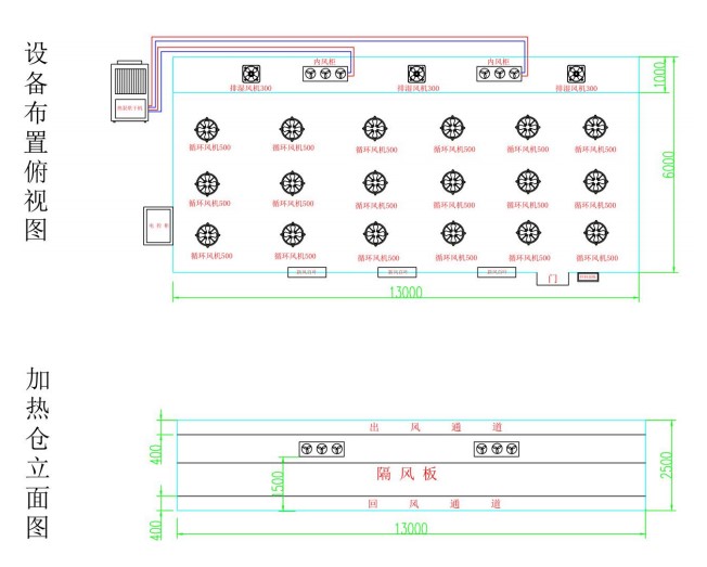 項(xiàng)目配置:1臺(tái)20匹熱泵烘干機(jī)組,兩臺(tái)內(nèi)風(fēng)機(jī),16臺(tái)繞流風(fēng)機(jī),2臺(tái)排濕風(fēng)機(jī)