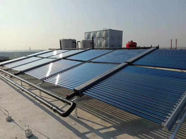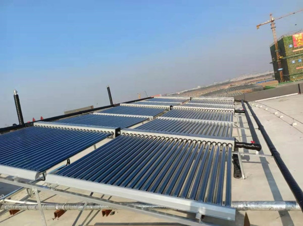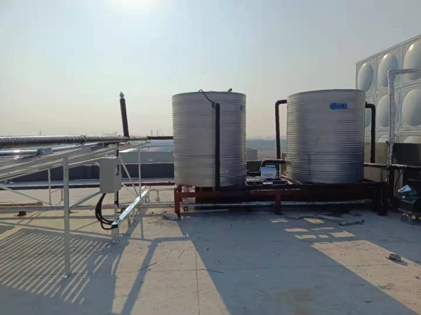 針對(duì)新廠(chǎng)房辦公樓30人加上食堂熱水需求,歐麥朗公司建議配置3噸熱水,6組太陽(yáng)能集熱器+空氣能雙水箱控制,晴好天氣時(shí)充分利用太陽(yáng)能加熱,避免了陰雨天輔助能源啟動(dòng)加熱過(guò)多的冷水,以最大化節(jié)省能源。目前熱水已安裝調(diào)試完畢,通過(guò)驗(yàn)收。