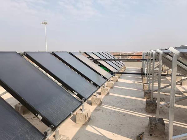 項(xiàng)目配置:采用20塊平板太陽(yáng)能集熱器和1臺(tái)歐麥朗常溫空氣能熱泵機(jī)組(共四套)