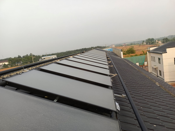 系統(tǒng)優(yōu)勢(shì):在晴好天氣時(shí),太陽(yáng)能集熱器將吸收的太陽(yáng)能熱量通過板式換熱器將熱量轉(zhuǎn)換到保溫水箱,對(duì)保溫水箱里的水加熱,使保溫水箱內(nèi)的水溫升高,保溫水箱內(nèi)的溫度達(dá)到設(shè)定的溫度值,以此達(dá)到直接利用儲(chǔ)熱水箱內(nèi)的熱水。若在連續(xù)陰、雨天或太陽(yáng)不足的情況下,太陽(yáng)能集熱器吸收的熱量不能滿足熱負(fù)荷的需要,則自動(dòng)啟動(dòng)空氣源對(duì)儲(chǔ)熱水箱加熱至指定溫度(55度,可調(diào)節(jié)),當(dāng)達(dá)到指定溫度后,設(shè)備自動(dòng)停止工作,以最大化節(jié)約能源,同時(shí)保證系統(tǒng)熱水的正常供應(yīng).系統(tǒng)已安裝調(diào)試完畢。