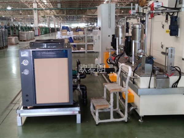 項(xiàng)目配置:考慮到在清洗液中會(huì)添加部分清洗劑,配置了一臺(tái)歐麥朗抗腐蝕空氣源熱泵機(jī)組。