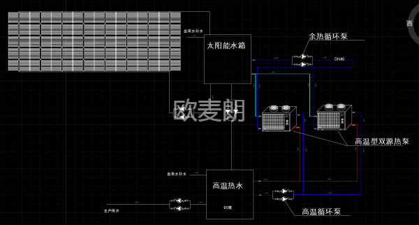 歐麥朗致力研發(fā)工業(yè)節(jié)能降耗方案。公司生產(chǎn)產(chǎn)品包括:太陽能、空氣能、水源熱泵、雙源熱泵等。經(jīng)過多年節(jié)能工程的技術(shù)積累,研發(fā)出最新的高溫?zé)崴鉀Q方案,太陽能與雙源熱泵的結(jié)合,大大的節(jié)省了高溫?zé)崴哪茉闯杀?。下面就為大家介紹我們的太陽能+雙源熱泵方案。