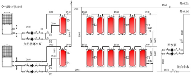 一、空氣能多水箱承壓熱水系統(tǒng)特點(diǎn):