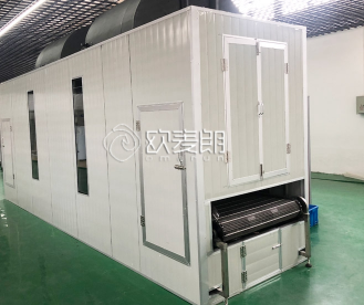 本設(shè)備為整體式結(jié)構(gòu),內(nèi)置循環(huán)風(fēng)機(jī),主機(jī)需放在烘房?jī)?nèi),避免了熱量的損失,同時(shí)也省去了連接銅管,抽真空,布置線路的繁瑣的工序,安裝非常快捷,
